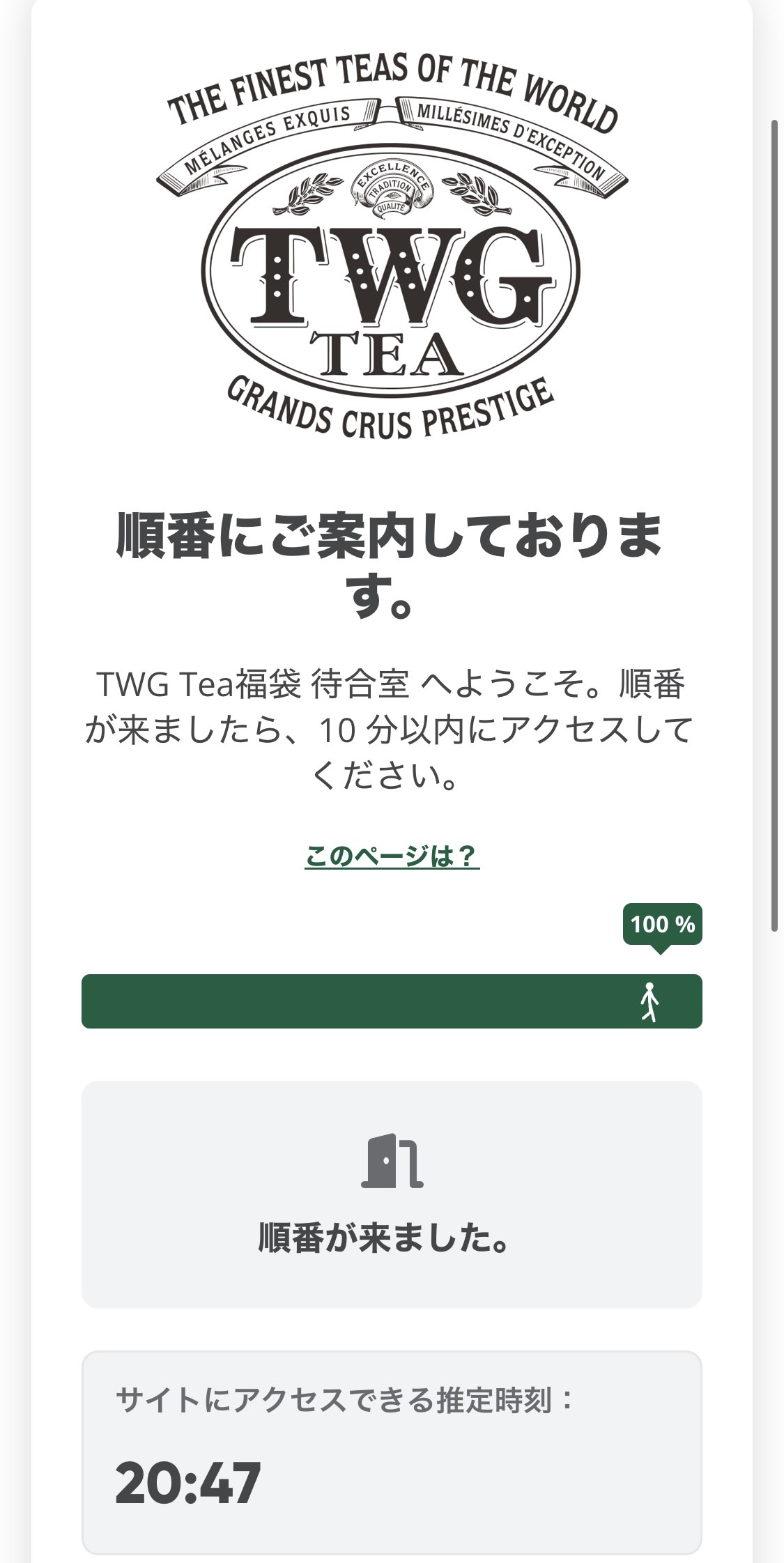 TWG Tea Lucky Bag(福袋)販売に伴う「仮想待合室」導入について